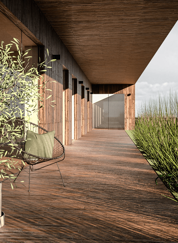 budete cítit spokojení. Plynoucí prostor, inspirovaný přírodou, ucelený